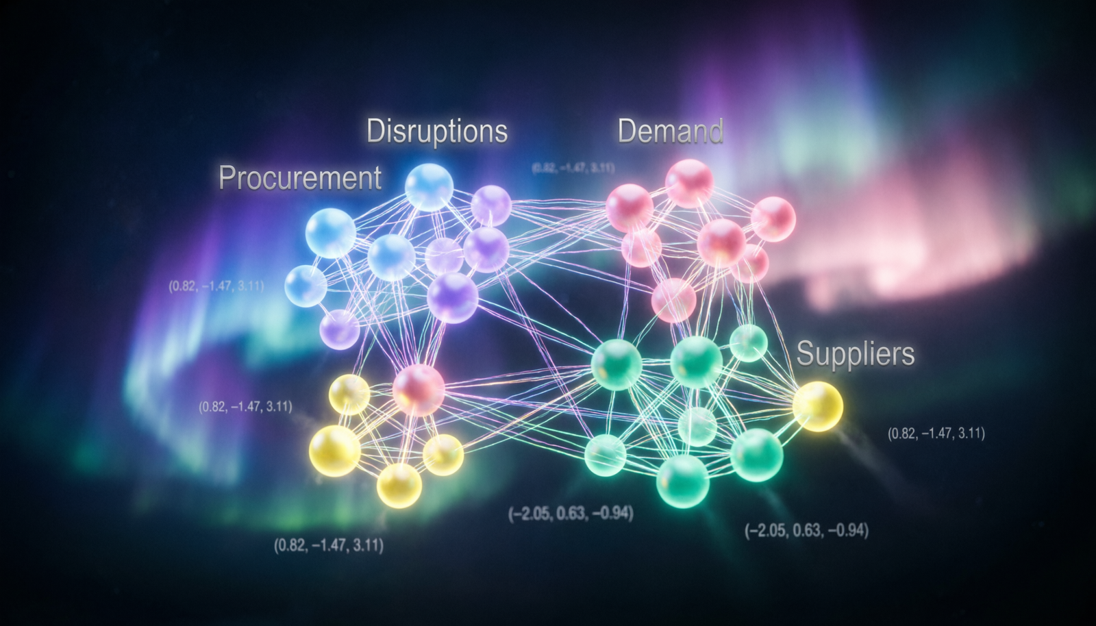 Embeddings of purchase orders, vendor negotiations, lead times, and contract terms indexed by semantic similarity to enable analogical reasoning across procurement decisions.